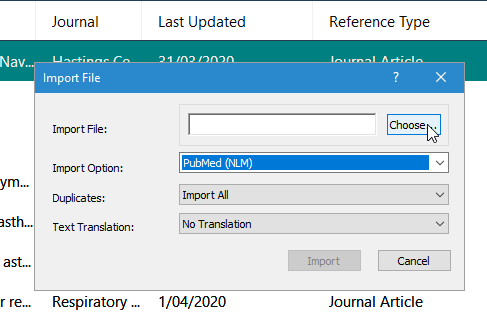 - Import optie: Cochrane Library (Wiley) aanduiden) > Import
