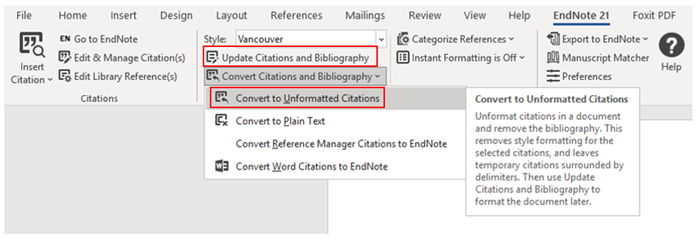- Kies in het tabblad EndNote in Word de juiste keuzestijl uit.