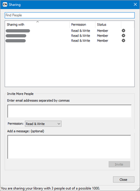 - Voer het e-mailadres in van de persoon met wie je de Library wilt delen en selecteer bij Permission ‘Read & Write’ of ‘Read Only’. Klik vervolgens op Invite om de uitnodiging te versturen