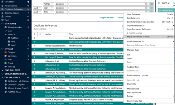 - De tijdelijke groep Duplicate References verschijnt dan in de linker kolom.