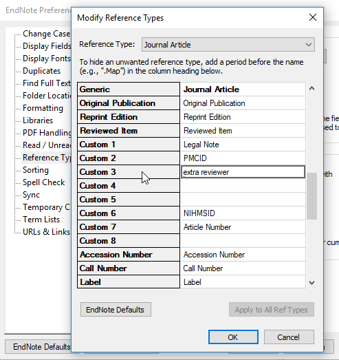 - Klik op Edit > Preferences > Reference Types > Modify Reference Types