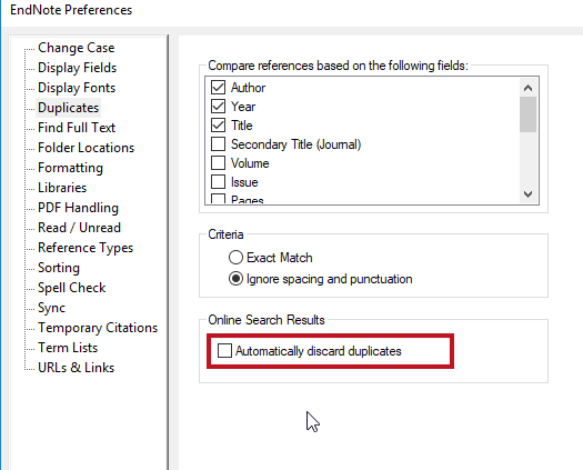 - Vals negatieve resultaten: referenties worden niet als duplicaten gevonden, maar zijn het toch (bv. klein verschil in schrijfwijze titel of auteursnaam).