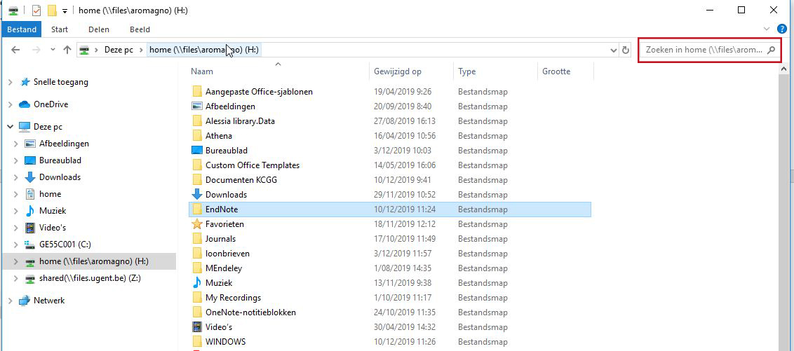 - Kijk eens na of je in je H-schijf reeds een (sub)map hebt aangemaakt waar je al je PDF’s met full-text onder bewaart. Dit doe je best onder je map EndNote.