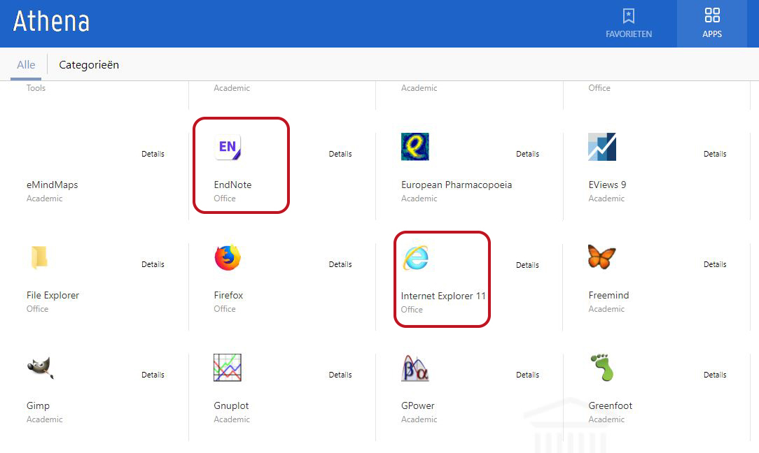 - Open EndNote, Word en Internet Explorer via Athena om zo volop van alle functionaliteiten gebruik te kunnen maken.